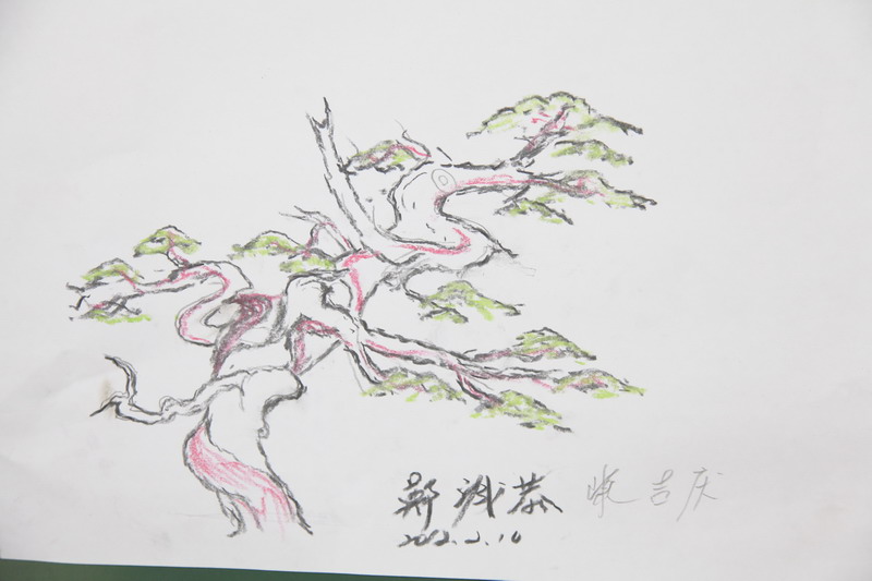 依設計圖,初步絲雕及整枝完成後的正面