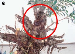 ![]() The cut small branches were about to be inarched at the concavity on the tree, as the circle shows. June of 1997 |