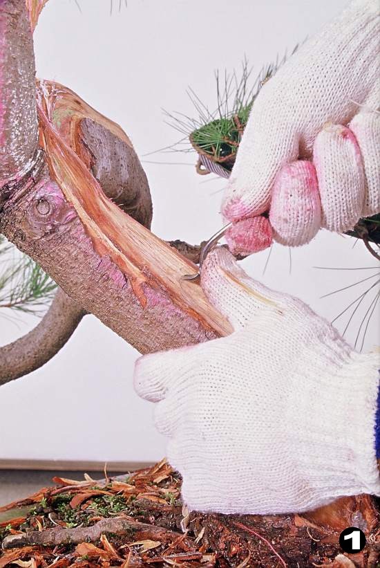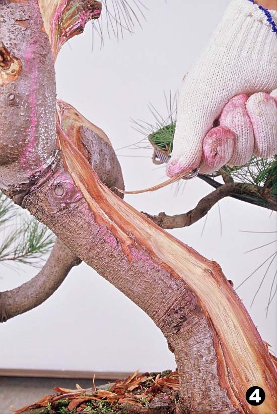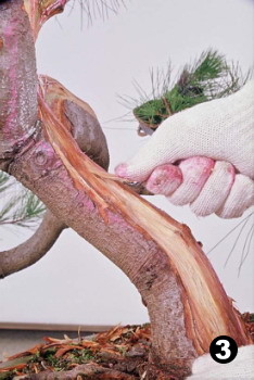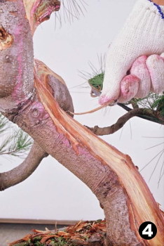[安全使用方法] 匙推刀的作用是向前推,挑起材絲,再以手輔助拉起材絲,或用尖嘴鉗夾起材絲,完成絲雕動作。 使用匙推刀時,一手持刀,另一手拇指作支撐點,用力向前推進,深入木材後,挑起材絲再以拇指夾著向上挑起或以尖嘴鉗夾起,完成挑絲動作,使用步驟如圖3~6所示。